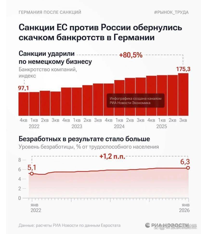 我查了下欧盟统计局和德国联邦统计局的最新的数据,心里真是一阵阵发凉。根据德国联邦统计局2026年2月发布的统计,2025年德国企业的破产数量已经冲到了1.8万家左右,这比2024年又跳了一大截。